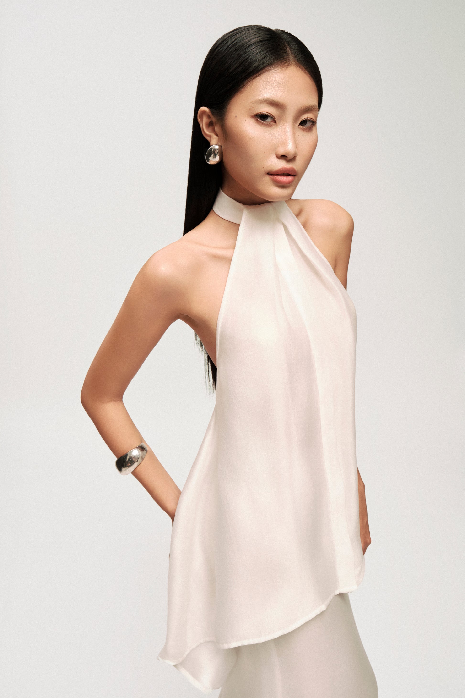 • Note: Triple-layer silk chiffon has a natural drape, non-stretch, and no padded cups. Perfect for evening occasions, art events, or any moment that calls for a refined and standout presence.
